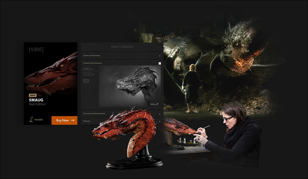 By connecting fans with storytelling we created opportunities to show the full value of each product. We searched for ways to interweave the story of the painstaking production quality and the essence of each unique brand weta produces products for. With moments of surprise and delight embedded throughout the site the connection between storytelling and product is not lost.