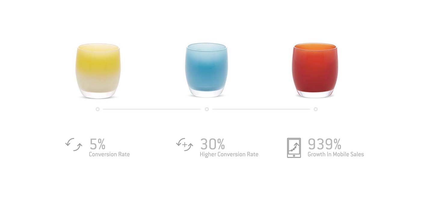 Glassybaby has taken giving back to a whole new level. From a garage start up to a philanthropic company with significant online presence and several brick and mortar stores, it has experienced huge year over year growth. We are proud to have played our part in the journey with the site leading to a 30% higher conversion rate and 939% growth in mobile sales.