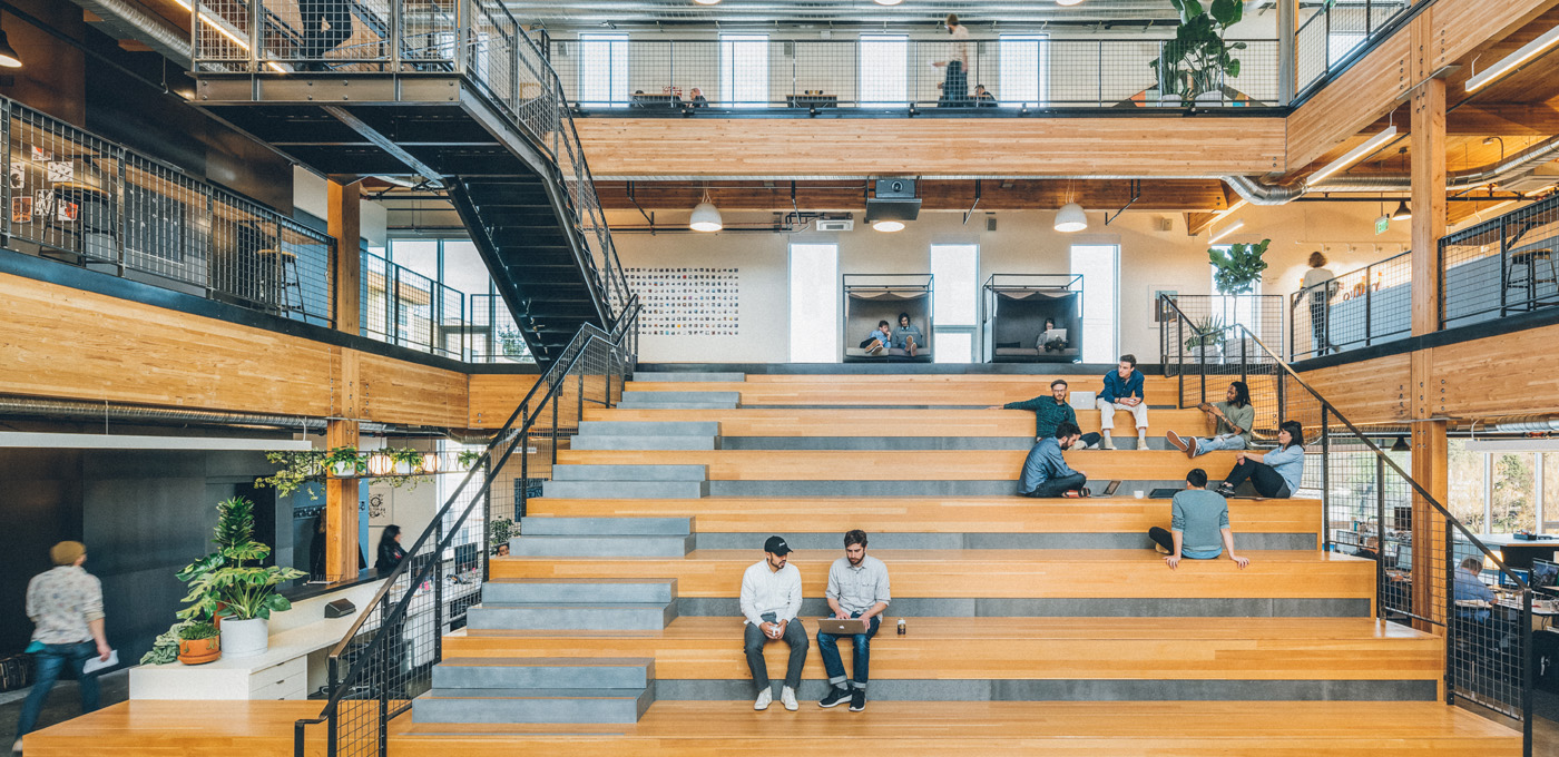 JD: We put three years into it from start to finish and were extremely involved in the whole design process from inside and out. We had an idea from the beginning to take the best things from our warehouse space, such as the character and spirit, and the idea of a giant, open space. We wanted a giant open space in the middle that forced people to have unplanned collisions throughout the day and interacting with people they wouldn’t normally interact with. We pushed the architects from the beginning to be able to see everyone from everywhere. We wanted a really open line of sight. The character all came down to materials and finishes and trying to provide a raw space and balance new and polished and shiny with raw and organic and gritty. Those were the considerations going in. We knew we wanted all different types of work spaces and people have different ways of working throughout the day and we wanted to provide for that. We have stand-up tables, everyone has a sit-stand desk, and cubbies where you can focus on solo activities. As your mood or needs shift, you have different options.